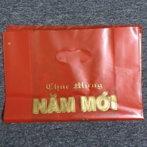Chuyên sản xuất túi nilon màu đỏ bóng đẹp in chúc mừng năm mới , 2 loại in chữ màu vàng và trắng bạc. Kích thước lớn đựng vừa thùng bia, giỏ qua hay lịch Tết :